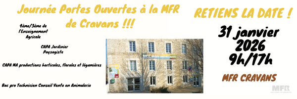 La MFR de Cravans appartient au réseau national des Maisons Familiales Rurales, un mouvement éducatif de plus de 80 ans d’existence, réunissant plus de 430 associations en France et à l’international. Les MFR forment chaque année plus de 70 000 jeunes et adultes dans 18 secteurs d’activités variés.